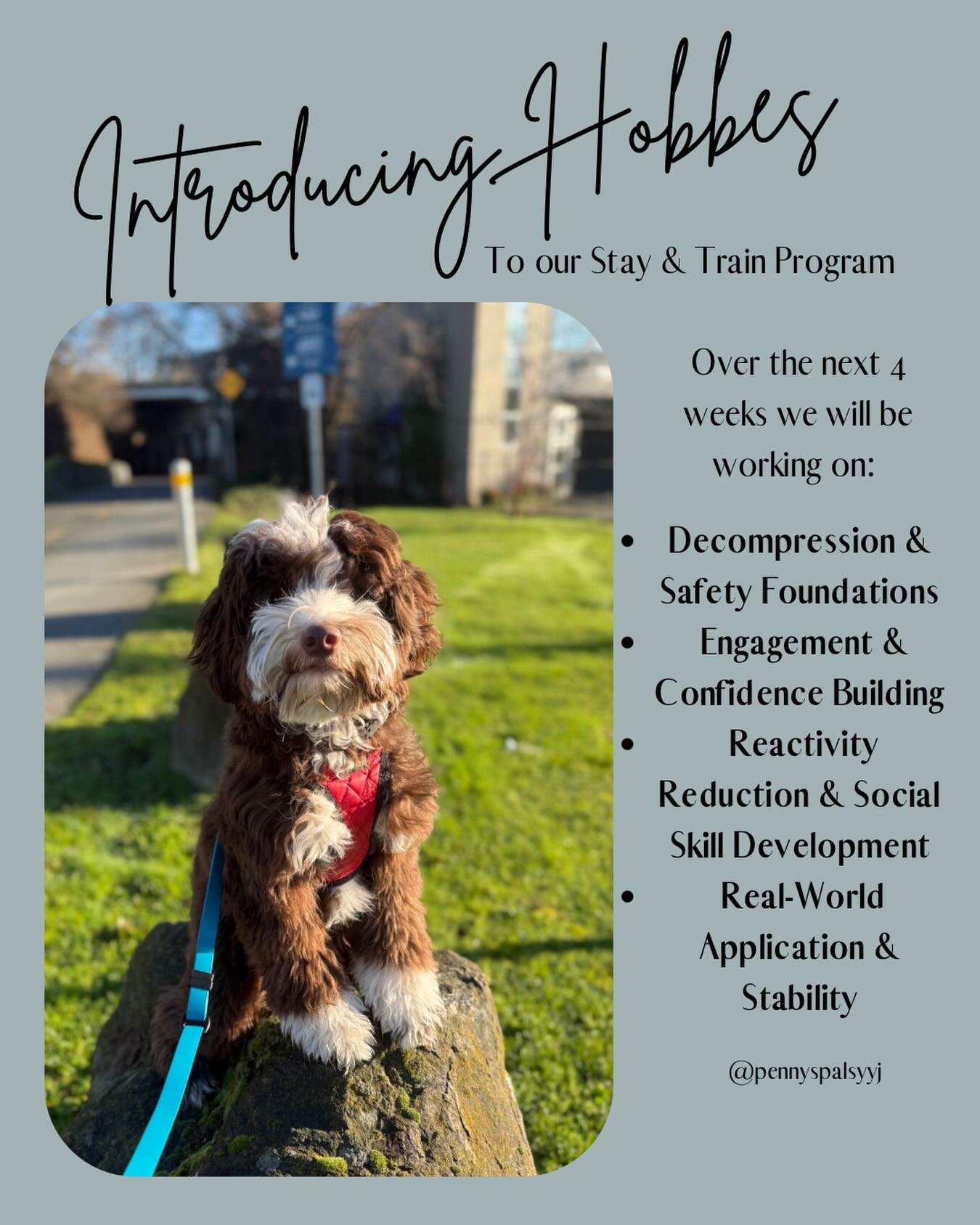Our inspiration and the heart of Penny’s Pals. Penny sparked Taylor’s love for training with her unique, sensitive personality. She’s the reason we specialize in working with reactive and fearful dogs — because dogs like Penny deserve to be understood.